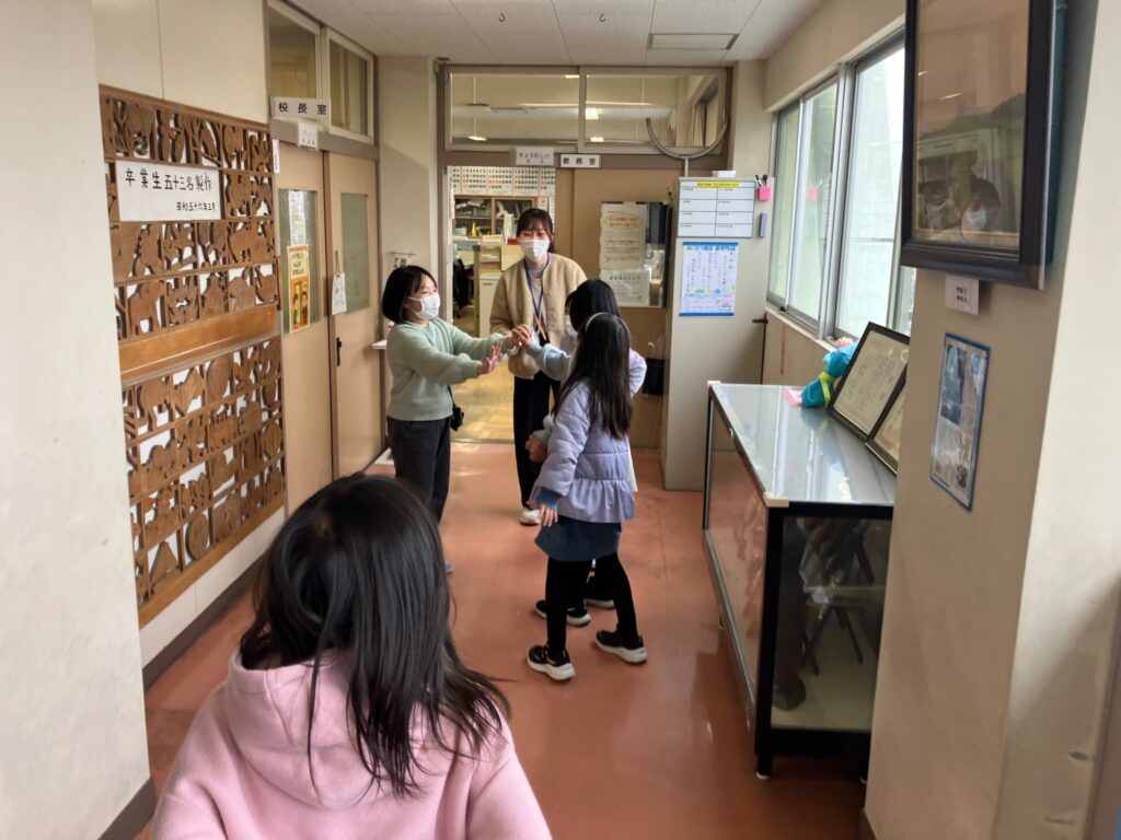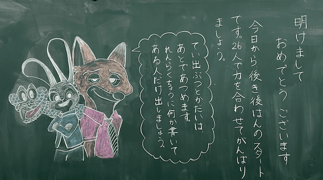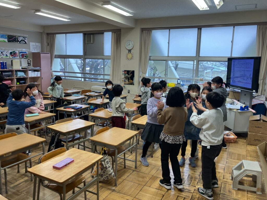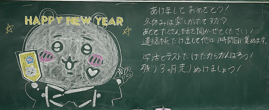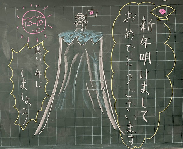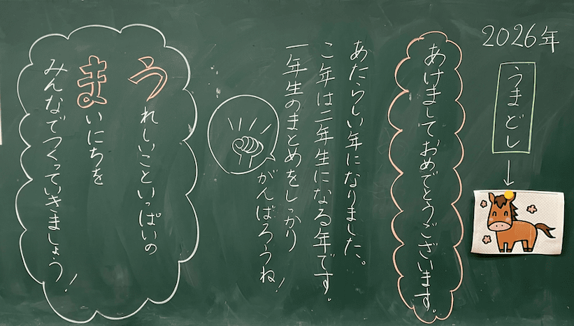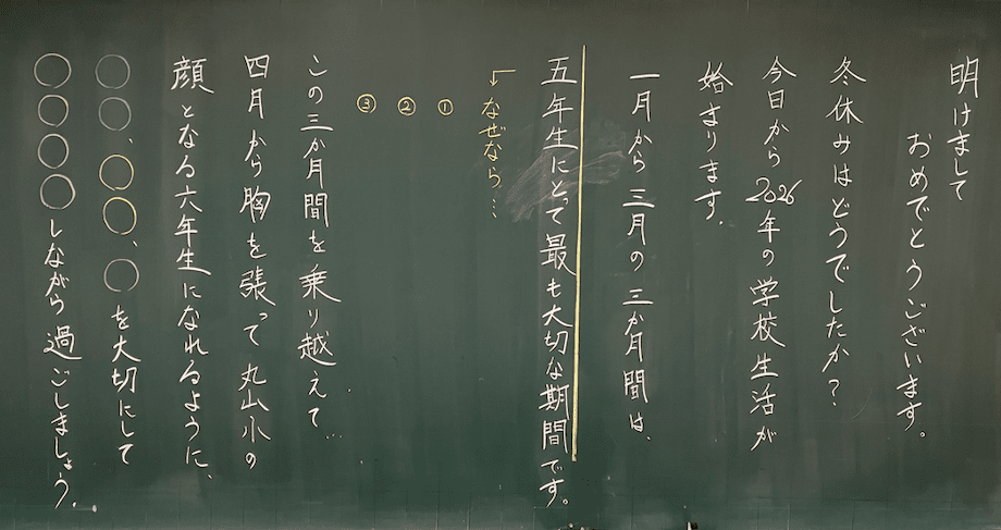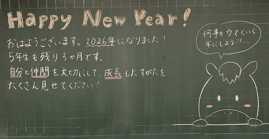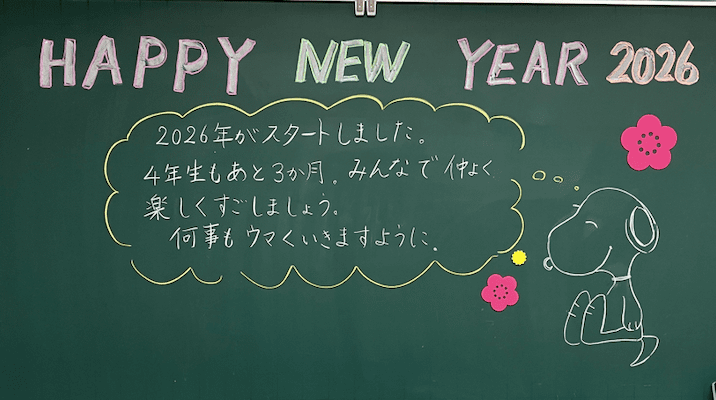 いろいろな教室で冬休みの思い出を話したり、ゲームをしたりするなど、徐々に学校生活に慣れるための楽しい活動をしていました。そして、4時間目は全校集会でした。寒いので各教室で校内放送を聞く形で行いました。6年生の代表の人が新年のめあてを発表しました。小学校最後の3ヶ月間を悔いの残らない日々にしたいと力強く決意を語っていました。