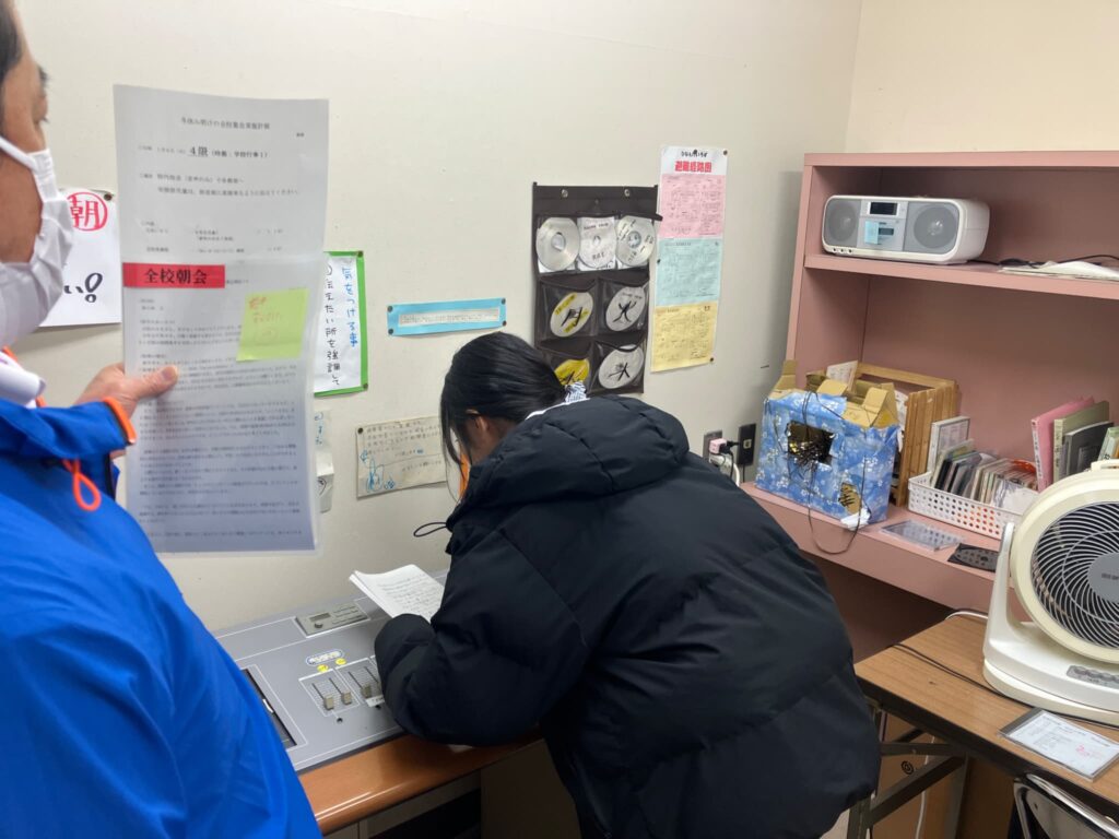 いろいろな教室で冬休みの思い出を話したり、ゲームをしたりするなど、徐々に学校生活に慣れるための楽しい活動をしていました。そして、4時間目は全校集会でした。寒いので各教室で校内放送を聞く形で行いました。6年生の代表の人が新年のめあてを発表しました。小学校最後の3ヶ月間を悔いの残らない日々にしたいと力強く決意を語っていました。