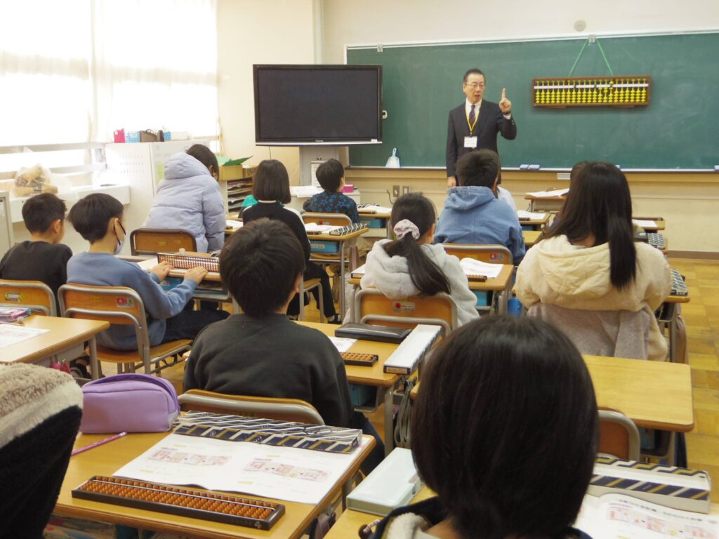 最後は4年生のそろばんの様子です。3桁のたし算やひき算にチャレンジしていました。繰り上がりや繰り下がりに苦戦している様子でした。