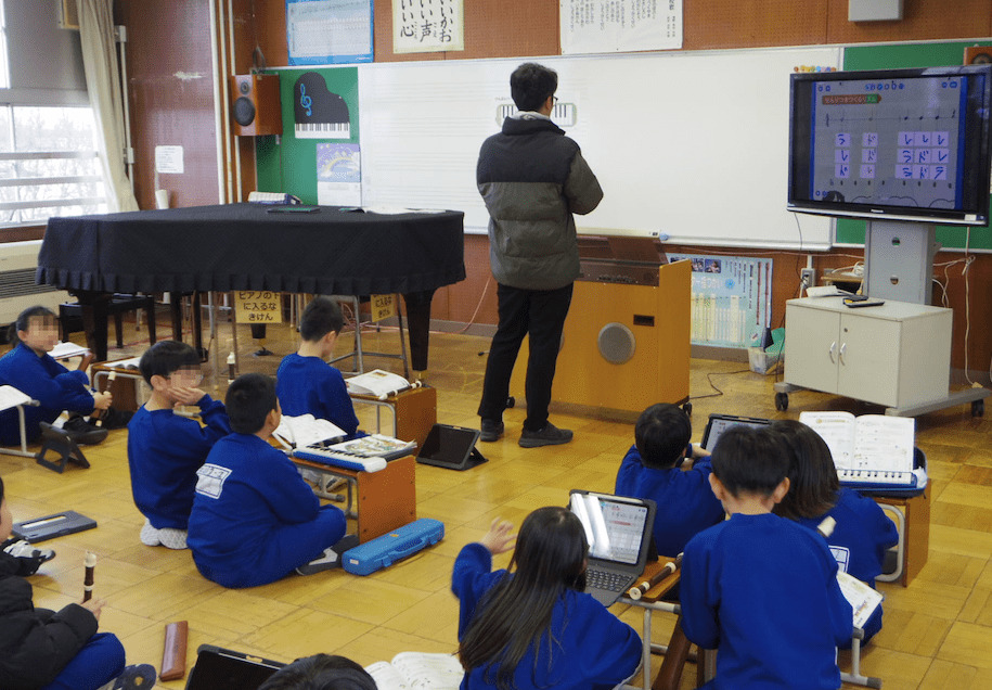3年2組は音楽室でリコーダーの授業です。さて、この先生は何をしているのでしょう?
