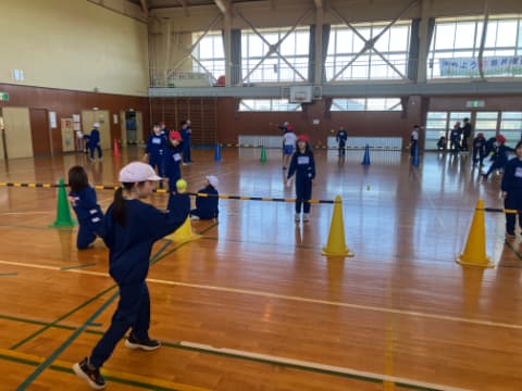 3年生では、お休みしている先生の分まで、隣のクラスの先生が一緒に体育の指導をしてくれています。