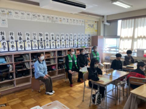 その後、「見守り隊」のみなさんで集まって情報交換会をしました。子どもたちの地域でのあいさつがよくなっていることを褒めていただきました。時には「いつもありがとうございます」と言ってくれる子どももいて、その言葉に本当に元気をもらっているともおっしゃっていました。その方のお話から、子どもの笑顔とあいさつは、大人を元気にする「魔法」であることをあらためて感じました。そのことを早速お昼の放送で子どもたちに伝え、これからも地域でのあいさつに意識が向くように働きかけをしました。