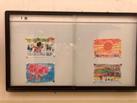 赤道を横断する地下道に丸山小の子どもたちの作品が飾られています。本日、新しく絵を入れ替えました。