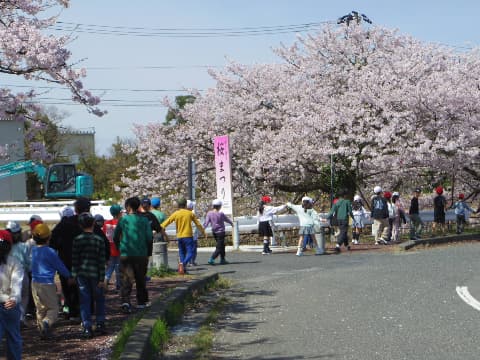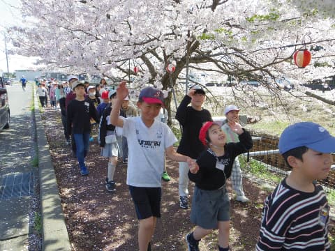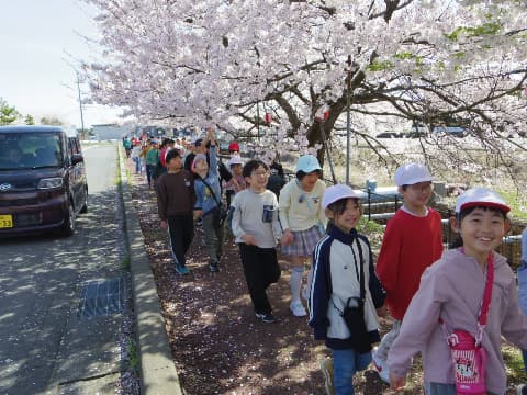 そして春爛漫のすご掘の桜を見に、各学年が校外学習に出かけました。2年生と4年生はペアで仲良く手をつないで出かけました。