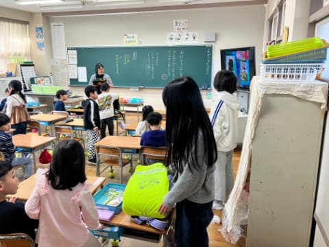 玄関前では地域のみまもり隊の方があいさつ運動に立ってくださいました。元気な「おはようございます」が飛び交います。