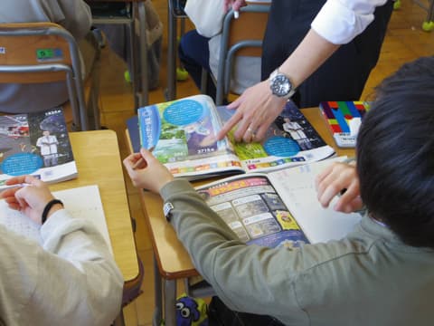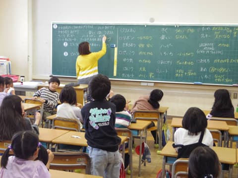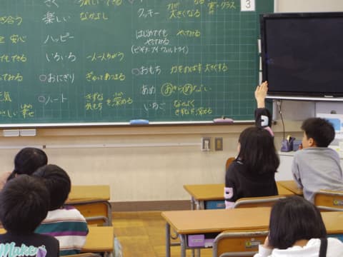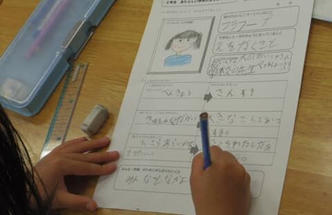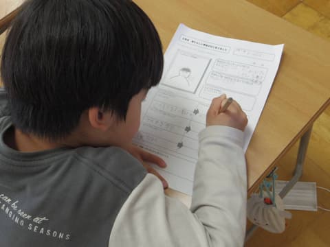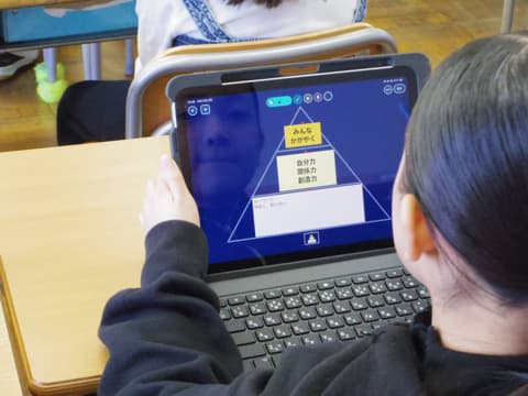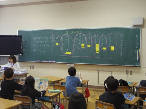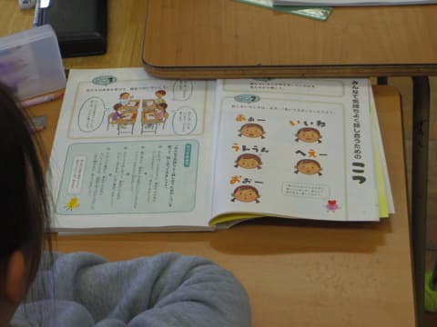 4年生はキャリア学習で自分のめあてを立てたり、道徳で話し合うための「あいうえお」を学んでいました。