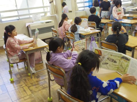 2年生は1年間のめあてを立てたり、係り活動を決めた後、静かに読書をしたりしていました。