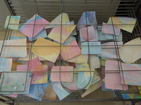 5年生は図工でマーブリングをしたり、学級活動でクラス目標を考えたりしていました。