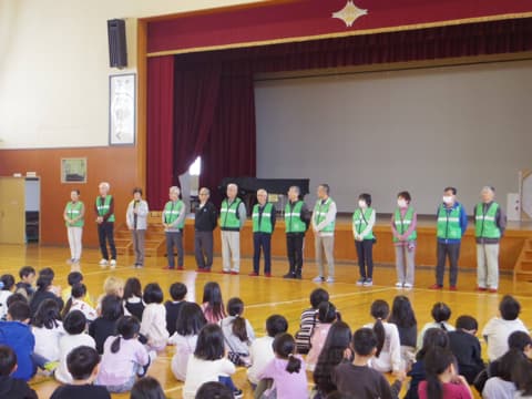 見守り隊の方からは、子どもたちからの元気なあいさつが何よりのやり甲斐であることや、危険な歩き方や自転車の乗り方をしないことなどお話がありました。