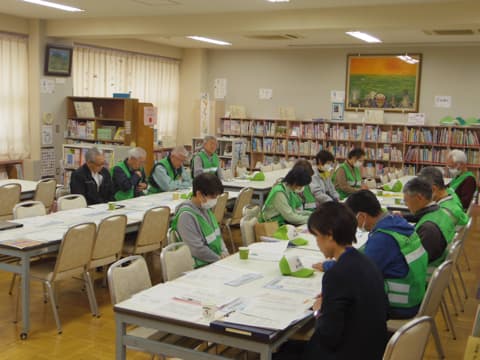 その後、図書室で見守り隊のみなさんと情報交換会をしました。信号のない横断歩道で止まってくれない車がまだあること、赤道の地下道に食べた後のゴミが落ちていることなど、地域の気になる様子について教えていただきました。これからの安全指導に生かしていきたいと思います。