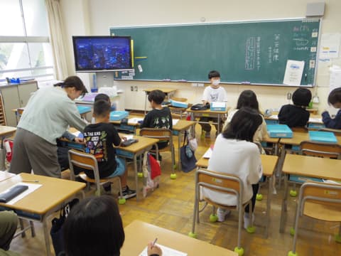 6時間目は5年生を加えた新メンバーによる第1回目の委員回活動の時間でした。委員会のめあてを立てたり、6年生が5年生に仕事を教えたりしていました。まずは運営委員会です。今月末に予定されている「1年生を迎える会」の流れや台本を確認していました。