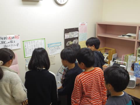 最後は図書委員会です。休み時間の本の貸出・返却など、どんな仕事があるのかを教えてもらっていました。
