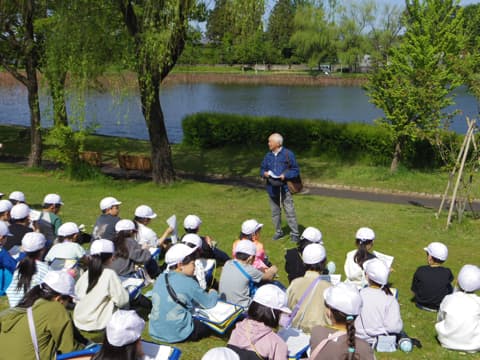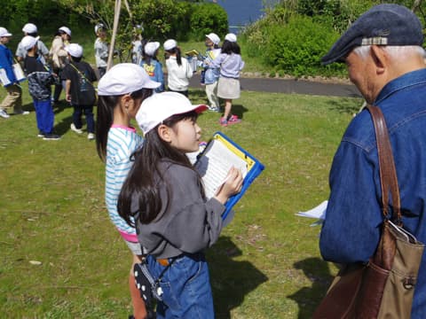池の広さが1.8haあり、丸山小の校舎ぐらいあるそうです。1万年前にこの地域に海岸線があって、それが徐々に今の海岸線へと堆積を続ける過程で残ったのが池であり、江南区には池がたくさんあることや、広範囲にわたって砂丘地帯が広がっていることなどを分かりやすく教えてくださいました。
