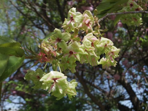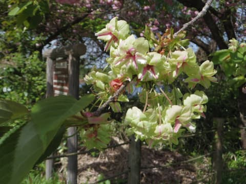 そして、今日の目玉「御衣黄(ぎょいこう)」です。平安貴族女性の着物に喩えた萌黄色の桜です。御衣黄が咲いている場所は新潟の中でも数少なく、しかも開花の時期も大変短い幻の桜なのです。