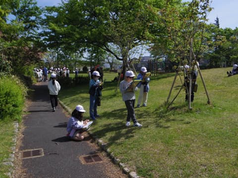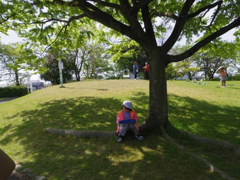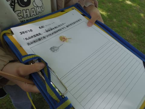 子どもたちはそんな珍しい桜をよく観察したり、落ちている花びらを拾ってスケッチしたり、地域の先生に質問したりして、時間いっぱいまで探究活動に没頭していました。