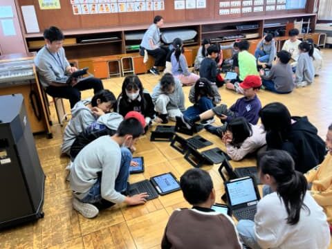 その日のお昼休みは、運動会に向けて、応援団の人たちが集まって応援歌をどうするか話し合っていました。