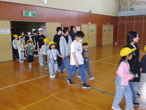 スマイリーチームの仲間とたっぷり活動を楽しんで、きっと心が打ち解け合ったことでしょう。うれしそうな顔で1年生が退場します。