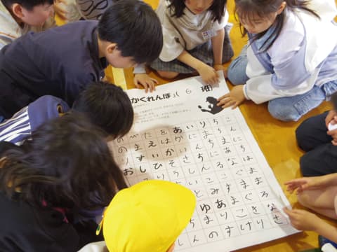 1つめの活動は、名前ビンゴです。スマイリーチームのメンバーの名前が隠れたシートをみんなで読み解いて、名前を見付けます。名前を見付けたら「よろしくね」と挨拶をします。
