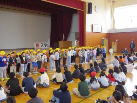 そして、最後は1年生からのお礼のメッセージと校歌合唱です。たった1ヶ月で難しい歌詞の校歌をよく覚えました。元気でかわいらしい声が響き渡っていました。