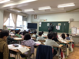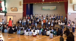 4年生は、6年生の思い出をクイズ形式にし、全校を楽しませました。