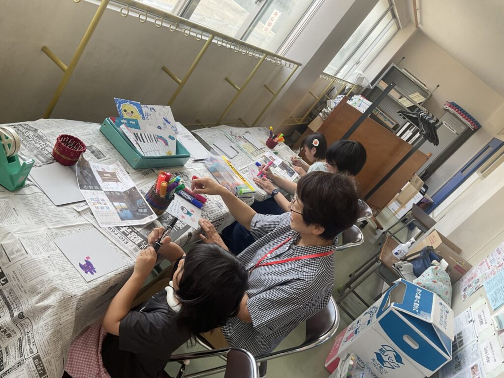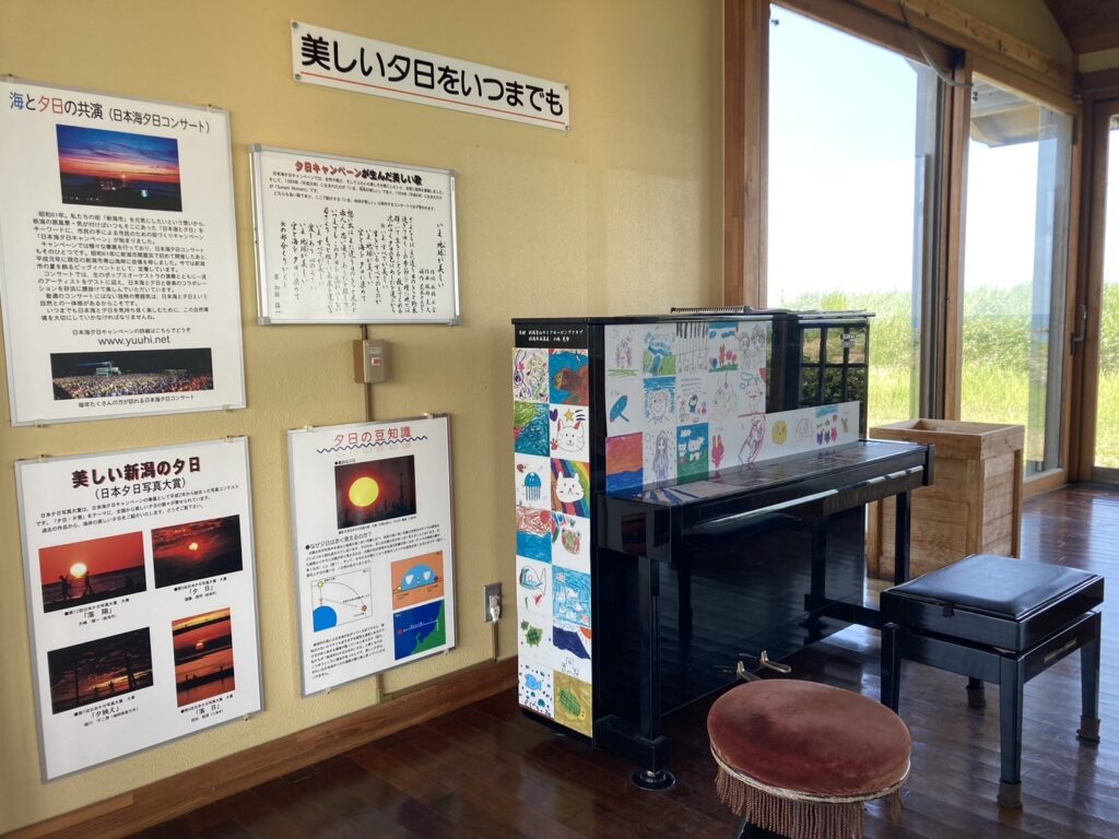 新潟西海岸リゾート計画協議会よりお話をいただき、小針浜にある建物【夕焼け小針】のピアノに貼る絵をみんなで描きました🤗