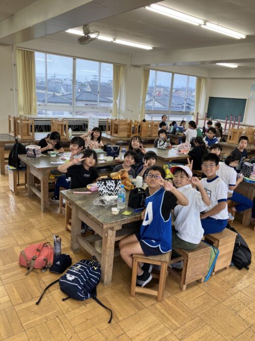 途中雨に降られましたが、それでも楽しみながら活動ができました。学校に戻ってからは美味しい美味しいお弁当を縦割り班で食べました。ここでも高学年が低学年のことを気遣っている姿が多く見られました。素敵〜♪