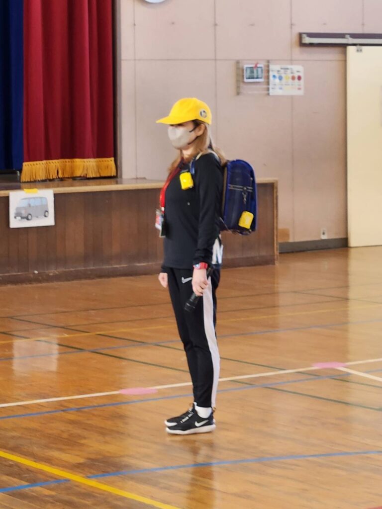 1年生の安全教室にて…1年生役をやりました😆