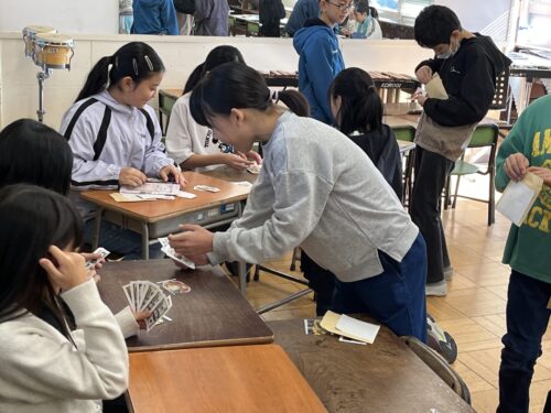 5年生の外国語活動でバーチャルショッピングアクティビティを行いました。おすすめの新潟グルメをALTのマーティン先生も含め、お客さんにお薦めしたり買い物をしたりする活動を英語でやり取りをしました。「What would you like?」「I'd like seafood bowl.」など、何度もくりかえし接客をすることで、自然と英語表現が身に付いてきました。言語習得は、相手を変えて何度もお話しすることが重要です。たくさん話していっぱい聞こう!