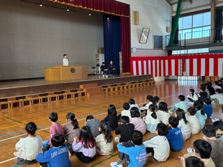 全校を代表して3人の子どもたちが今年度の目標を語ってくれました。堂々としたスピーチ!流石は真砂っこ!