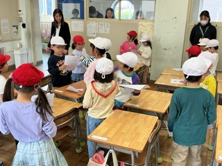 自己紹介をみんなでし合います。自分から声をかけて上手に自分のことを伝えられたね〜。