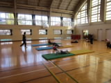 低学年は、マット遊びで色々な動物の動きに挑戦しています。あざらし、うさぎなど。体つくりの基本の動きを楽しんでいます。