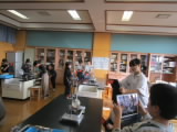 中学年は、水を沸騰させ時間と共にどのように変化していくのか実験しました。タブレット端末で記録したり、時間と水の様子を記録したりしました。