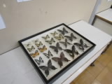 2年生教室に西蒲区で見られれる蝶の標本があるので、見に来てくださいと他の学年に声をかけました。たくさんの種類の蝶がいることに驚いていました。