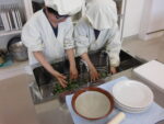 学校の周辺でたくさんのよもぎを見つけました。そのよもぎを使って、白玉だんご作りに挑戦しました。家庭科室からは、よもぎのいい香りが広がっています。春の味をおいしくいただきました。