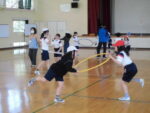 3,4年生が、フラフープを使ってからだつくり運動をしていました。難しい動きでも、しばらくすると、軽やかに動くことができていました。ペアで楽しそうに活動しています。