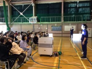 今日はキャリア教育として、南極で活動されていた松本巧也様をお招きしてお話を聞いたり、防寒具やブリザードを体験したりしました。南極のことや南極でのお仕事について貴重なお話を聞かせていただきました。越 …