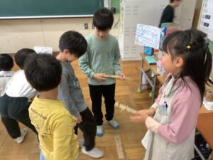 2年生の生活科「あそんで つくって くふうして」の学習で、楽しく遊べるおもちゃを作ってきました。2年生だけで遊ぶのでなく、1年生にも作ったおもちゃで遊んでもらいたい!という子どもたちの声から、6日( …