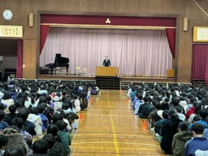2月27日(金)、「卒業おめでとう集会」が行われました。久しぶりに全校の子どもたちが体育館に集まりました。笑いあり、笑顔あり、歓声あり・・・とってもあったかい集会でした。 5年生が …