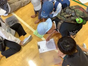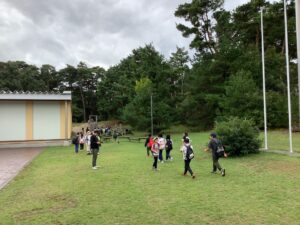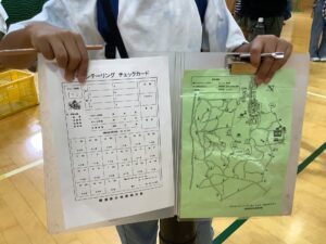 6年生がプレゼントしてくれた「てるてるぼうず」です。小雨が降ってますが、屋外でのオリエンテーリングができました。