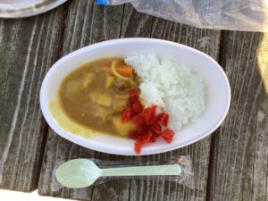 やわらかな日差しが降り注ぎ、さわやかな風が吹く中、おいしくカレーライスをいただきました。ごちそうさまでした!