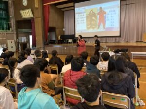 今日はキャリア教育として、南極で活動されていた松本巧也様をお招きしてお話を聞いたり、防寒具やブリザードを体験したりしました。南極のことや南極でのお仕事について貴重なお話を聞かせていただきました。越冬隊のみなさんからのメッセージもいただき、充実した時間となりました。こどもたちは、自分のこれからに思いを馳せていたようです。