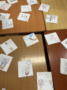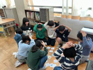 読み札の言葉は、言い回しを考えてリズムよく読めるように工夫しました。絵札は、かわいらしい絵が揃いました。学校生活にかかわることもたくさんあり、女池小学校への温かい思いが込められているものもありました。日本の伝統に触れる楽しい学習になりました。