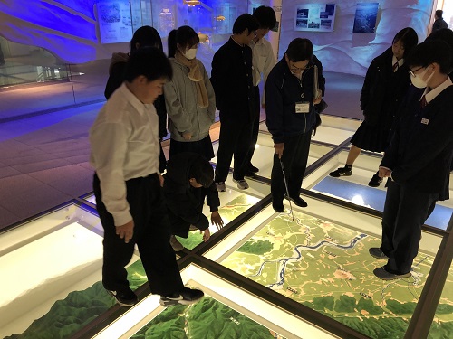 11月12日(水曜)、19日(水曜)に「あがのがわ環境学舎」様のご協力のもとで、1年生が水俣病についての学習を行いました。12日は水俣病について、原因や被害、水俣病患者への偏見や差別などについて学びました。19日は1日校外学習を行いました。阿賀町の旧昭和電工跡地を訪れ、当時の写真や地図と見比べながら、実際に現地に訪れないと分からないことを見聞しました。午後は環境と人間のふれあい館を訪れ、語り部さんから体験談についてお話をいただきました。また、館内の展示をていねいに説明していただき、差別や人権侵害、経済発展と環境問題の関係などについて理解を深めることができました。ご協力いただいた皆さま、ありがとうございました。