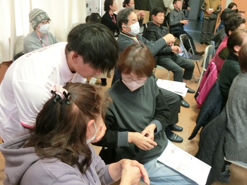 11月28日(金曜)午後、南浜地区コミュニティ協議会主催の講演会が行われました。新潟医療福祉大学リハビリテーション学部鍼灸健康学科長の粕谷大智様をお招きし「東洋医学とセルフケア ~健康管理にツボ刺激を活用しよう~」のタイトルで講演会をいただきました。スマホ症候群やストレスの多い現代社会においで、「いつでも」「どこでも」「簡単に」行えるセルフケアについて実践を交えてお教えいただきました。疲れやコリをほぐすツボ刺激を行い、講演後は参加者が元気になっているように感じました。粕谷先生、ご協力いただいた大学生の皆さん、ありがとうございました。