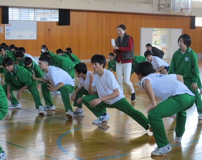12月11日(木曜)、講師に星野さんをお迎えし、ロコモ(ロコモティブシンドローム)予防体操を行いました。冬場の運動不足解消と健康維持増進を目的に、保健委員会が企画・運営を行いました。全校生徒が笑顔で楽しそうに踊っており、会場全体が元気いっぱいになりました!
