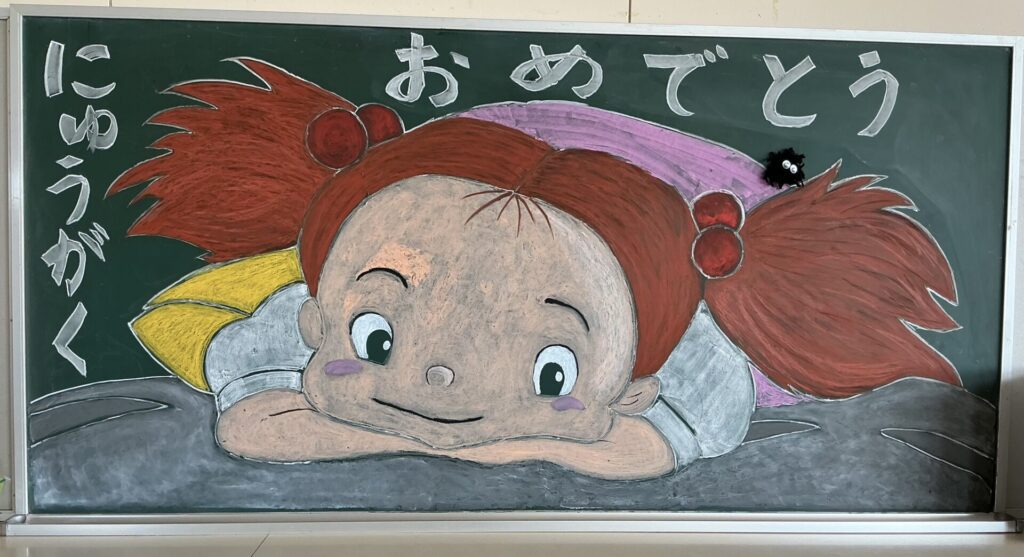 入学式に合わせ、今年度も地域ボランティアの皆様が、1年生教室にチョークアートを作成してくださいました。こどもたちも大喜びでした。 素敵なイラストをありがとうございます!