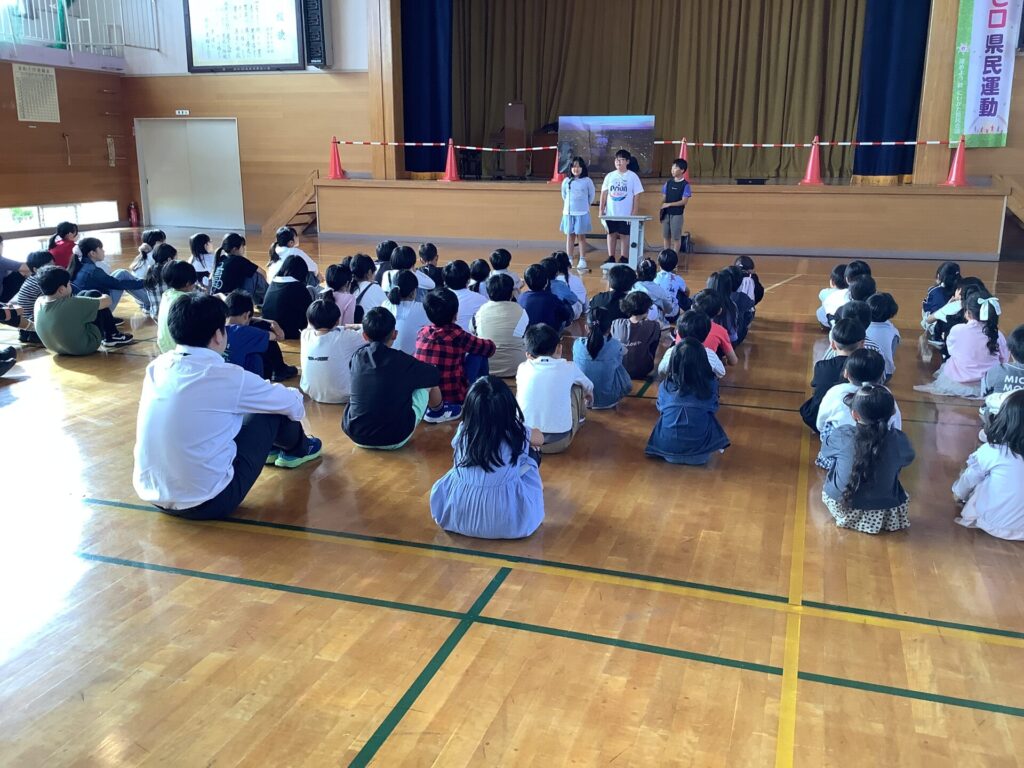 後期を振り返って3人の児童が発表しました。苦手なことに挑戦したり、努力したりして取り組んだことを発表しました。さすが上学年でした!