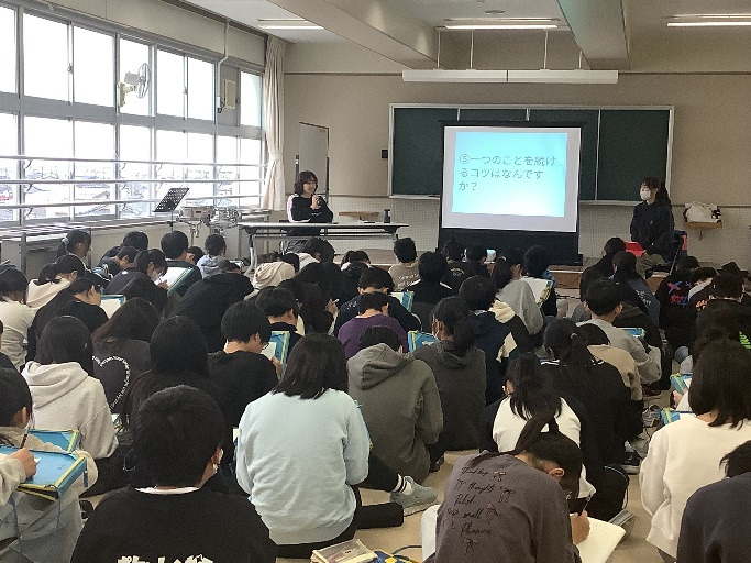 2~6年生がプレゼント、クイズやゲーム、飾りつけなどを分担して、1年生を迎える会を行いました。お兄さんお姉さんたちからはダンスの披露があり、1年生からはお返しに元気のよい歌声のお礼がありました。ムスブくんとムスビちゃんも登場して、心あたたまる会になりました。