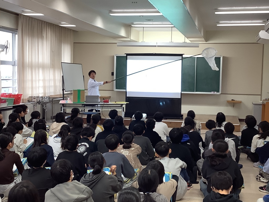 総合「見つめよう 私たちの将来」で、「よりよく生きること」「働くこと」について学習しています。さまざなま職業のゲストティーチャーをお招きし、多様な生き方、考え方に触れることで自分の将来についての考えを広げています。初回は校長先生、2回目は大学で科学を教えている先生に来ていただきました。今後も多くのゲストティーチャーに来ていただく予定です。