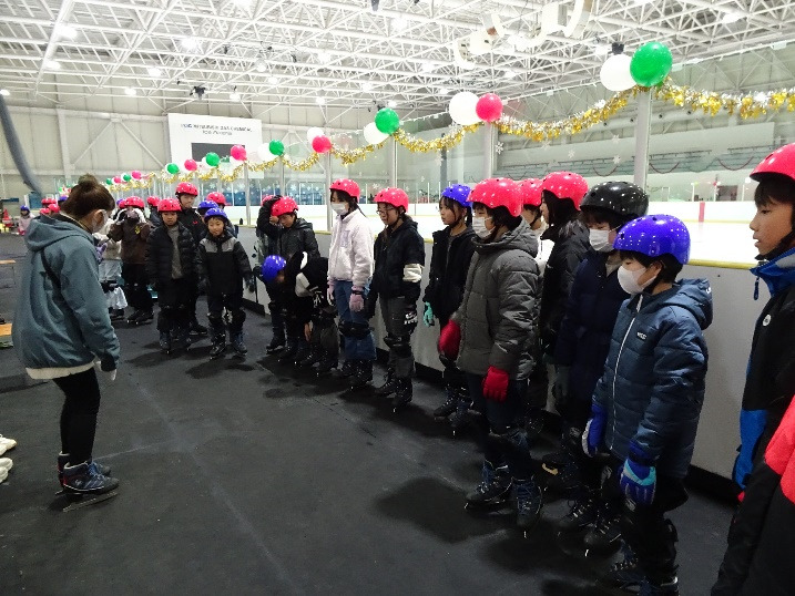 冬のスポーツに親しむため、アイスアリーナにスケート体験に行ってきました。レッスンで基本を教えてもらった後、時間いっぱい練習に励みました。汗だくになるくらい、思いっきり楽しんだ子どもたちでした。なお、この体験学習の経費にはMGC三菱ガスアイスアリーナの命名権料が充てられています。